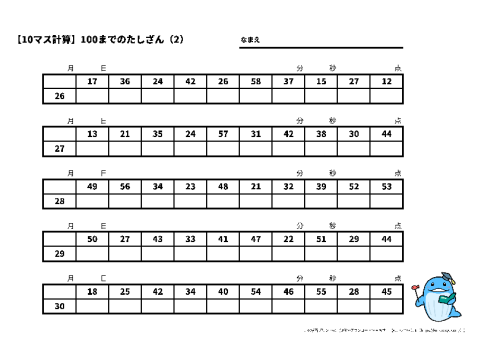 100までのたしざんの10マス計算に挑戦!