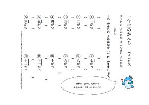一年生で習う数字の漢字のよみがな・よみかたを練習するプリントです。