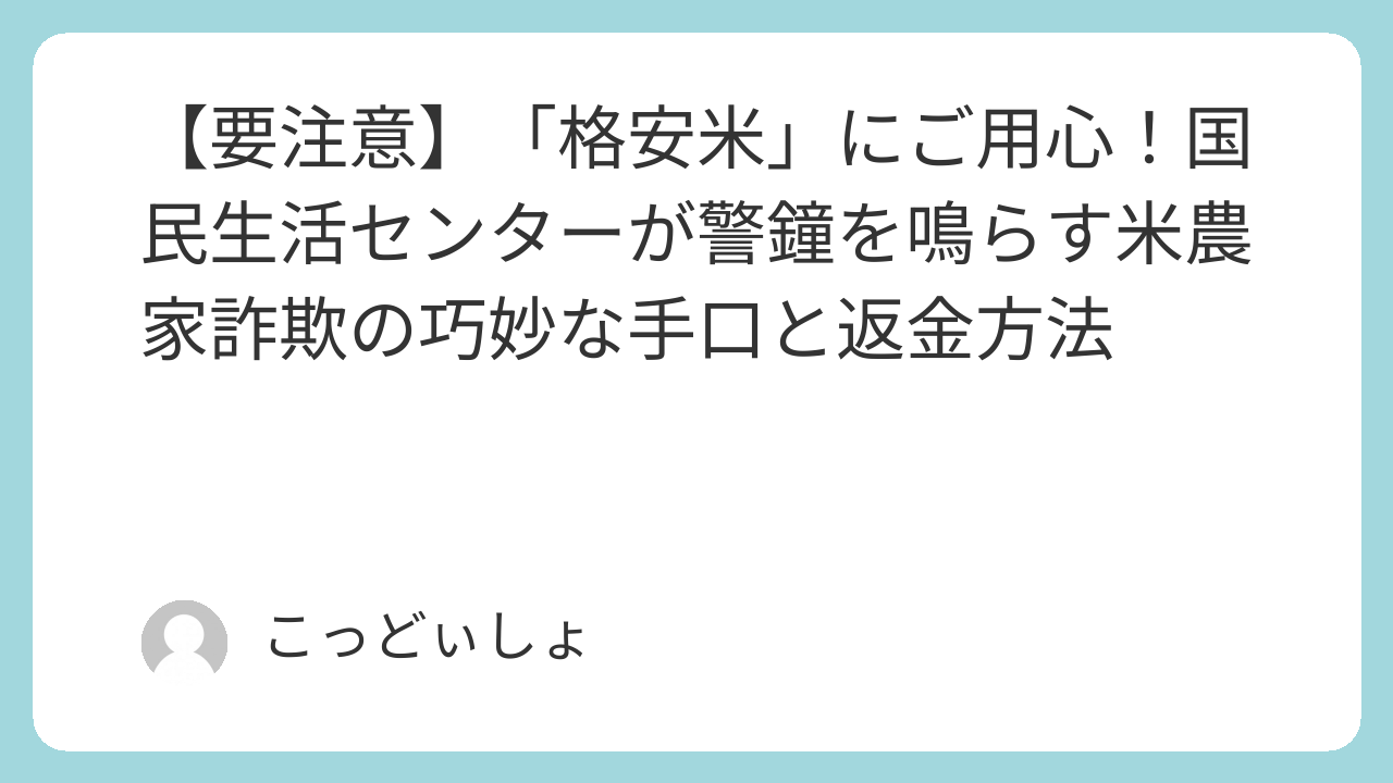 ここ数年、日本の米価が高騰しています。家計を預かる私たちにとって、「少しでも安いお米」を探すのは当然の心理ですが、この「安く買いたい」という心理に巧妙に付け込み、消費者を騙す「米農家詐欺」が急増中。国民生活センターからも注意喚起がなされています。特に目立つのは、極端な格安価格でブランド米を販売する偽の通販サイトです。