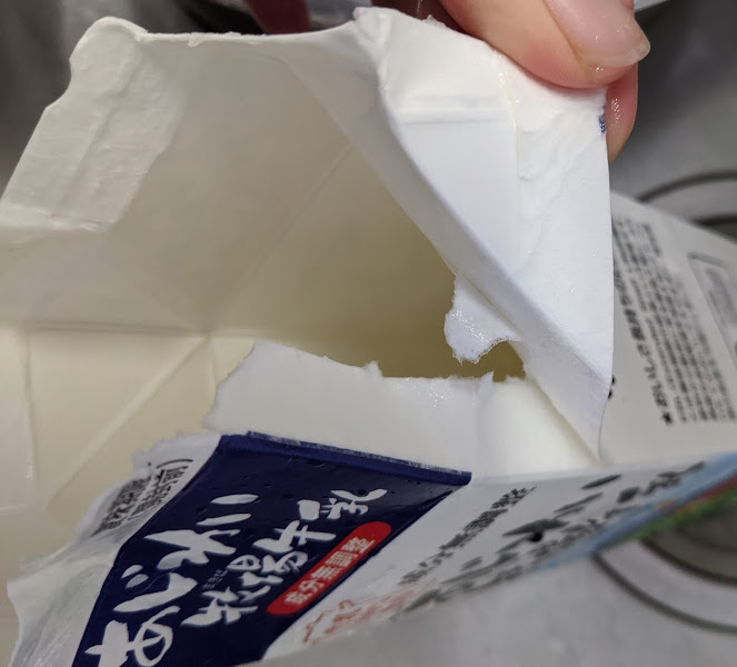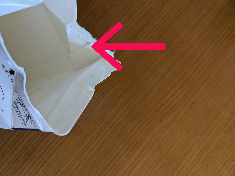 牛乳パックを作る際に重ね合わせた部分がどこかにあります。