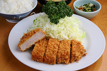 名物は千葉県産のこだわりの豚肉を使った「ロースかつ定食」。リーズナブルな価格でご飯が食べ放題なので、腹ペコでむかいましょう!他にもひれかつ定食や海老フライ定食など、サクサクの衣と素材の旨さを感じるメニューが揃っています。