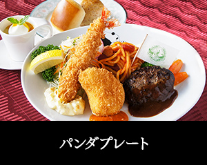 名物メニューは上野動物園にちなんだ「パンダプレート」。エビフライ、ハンバーグ、スパゲッティーなどの子供が大好きなものばかりが入っています。特別なパンダデザートも入っているのでボリュームが満点!他にもナポリタンやカニクリームコロッケなどの洋食から、季節の果物を使ったパフェやケーキなどのカフェメニューもあります。